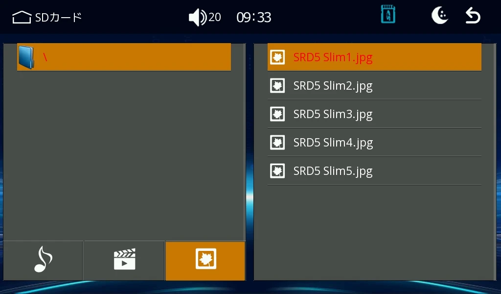SRD 5 SlimはMicroSDカードを挿入できるようになっており、カード内の写真データの閲覧や音楽・動画データの再生が可能です。