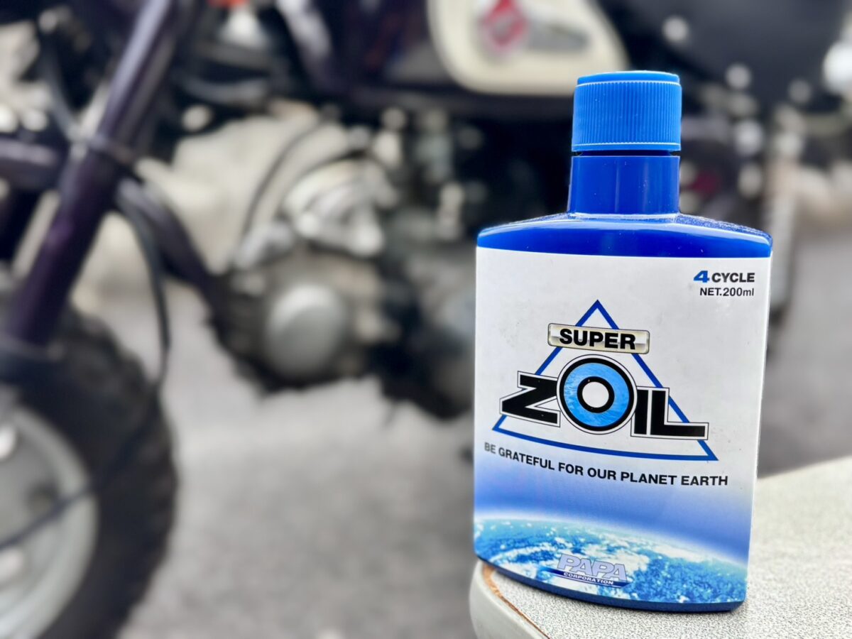 シリンダーとピストンを新品にすれば直りそうだが「また壊すかも…」という不安は拭えない。そんなときに70~80年代の旧車を新車のようなコンディションで維持しているスーパーゾイルオーナーの話を聞く。これを使えばエンジンを保護できるのでは? と思い、修理したモンキーにスーパーゾイルを投入した。