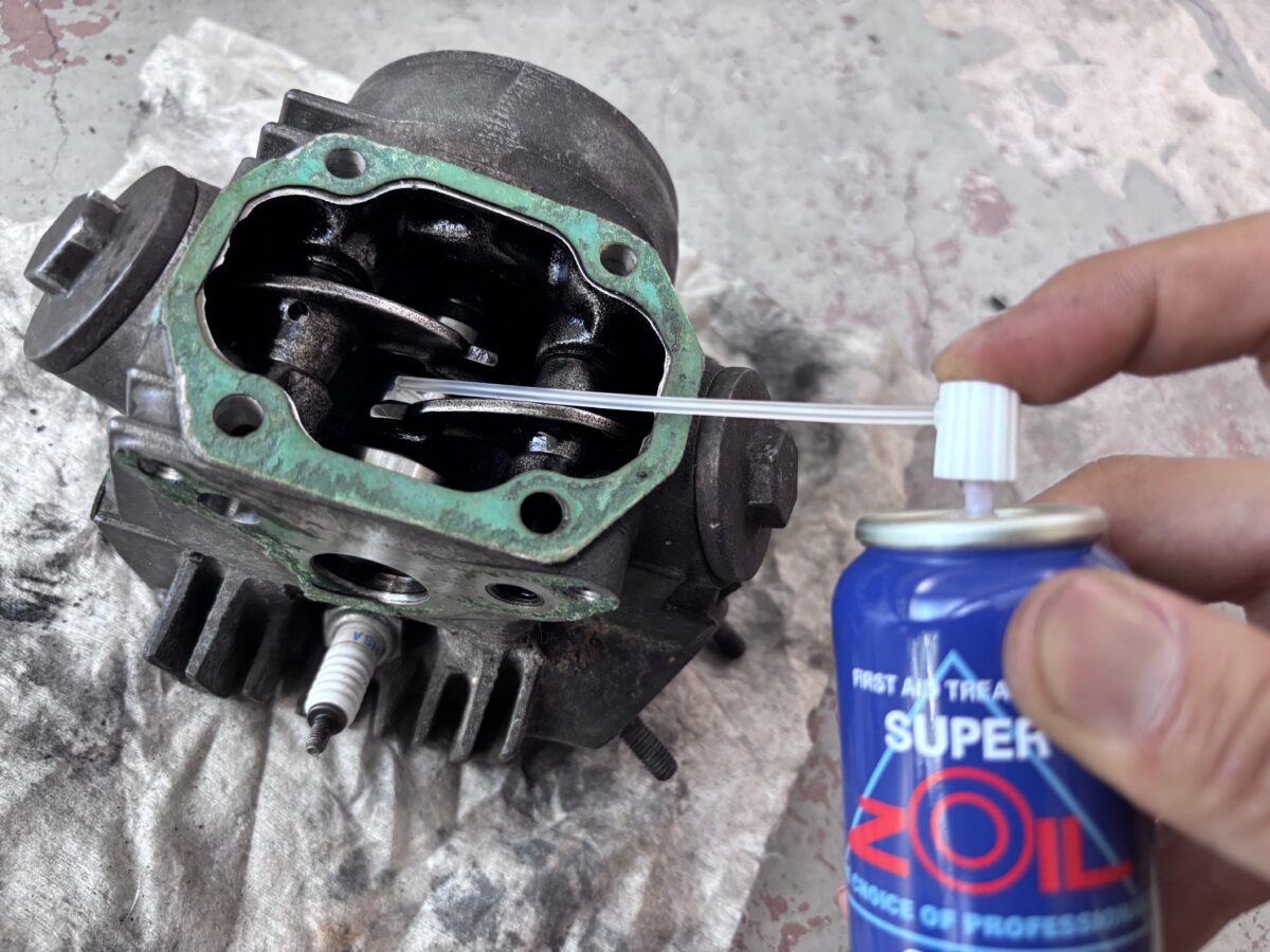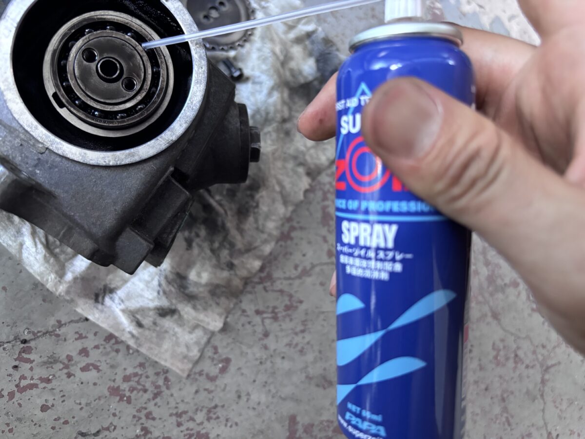 エンジンパーツの組み付け時には、このスーパーゾイルスプレーを使用した。