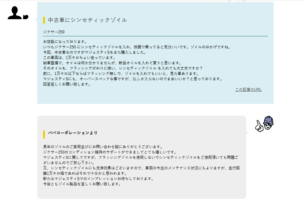 製品の実力はもちろんのこと、こうしたレビューの高評価や、真摯な対応でユーザーと意見の授受をしているメーカーの姿勢も、長期にわたってスーパーゾイルが信頼されている要因かもしれない。