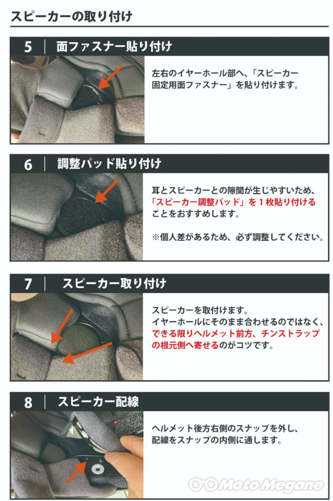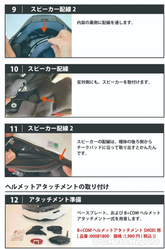 B+COM本体やスピーカーの取り付け方なども写真付きで詳しく解説されていて分かりやすい!