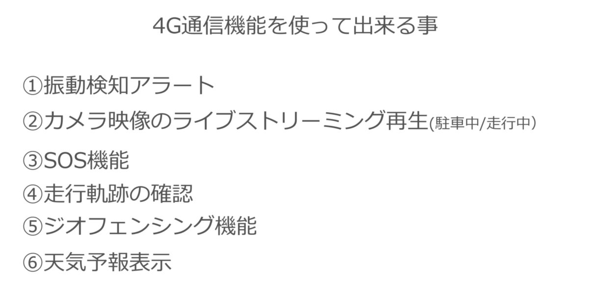 これは『スマートライドモニター AIO-6 LTE』にSIMカードを挿入することで4G通信機能を使った下記の機能を使うために用意されているものだ。
