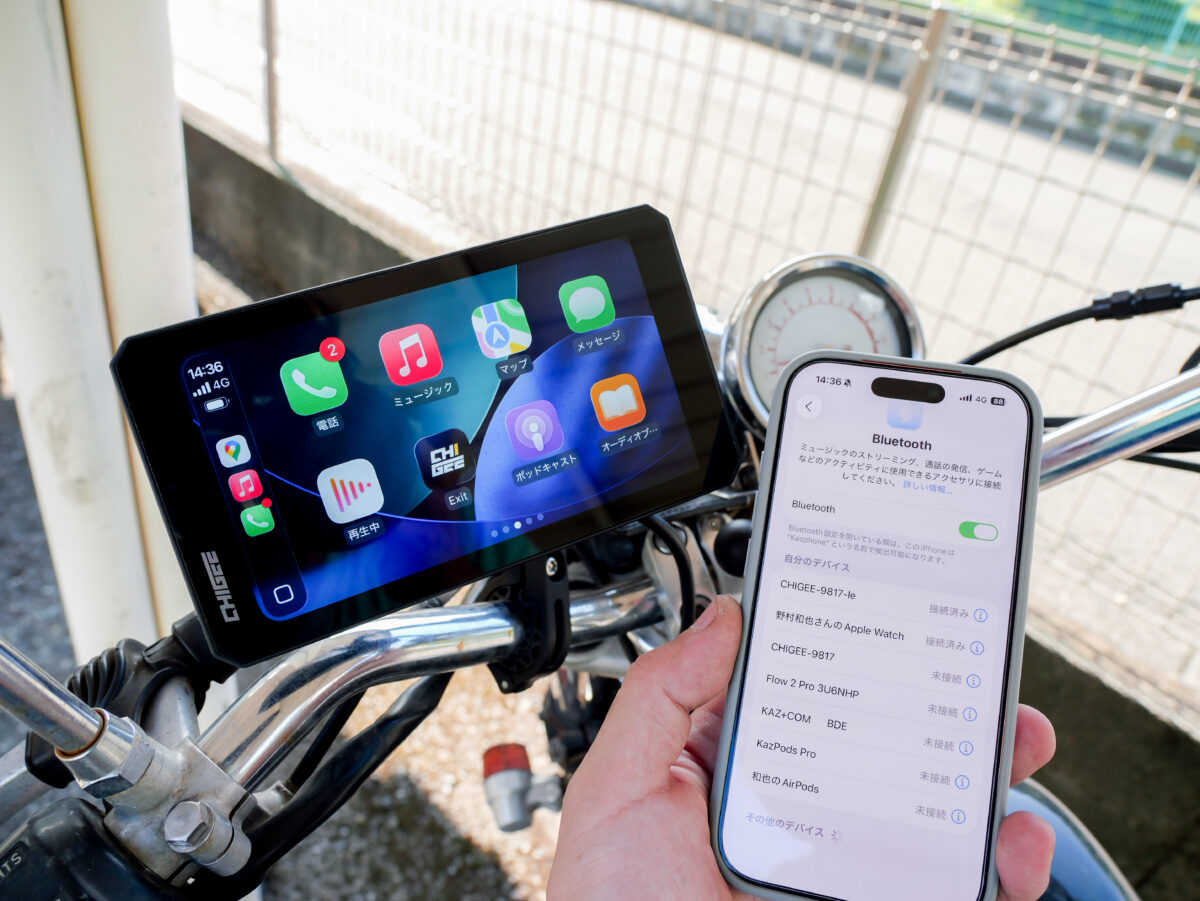 スマホとのBluetooth接続も実にスムーズで、車のナビなんかと同様にペアリングキーの入力と了承を求められるので、表示通りに通りにタップしていくだけでペアリング完了。