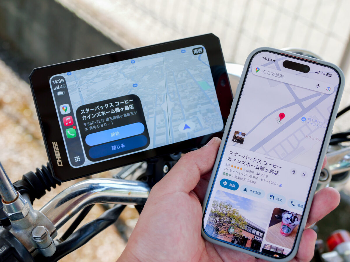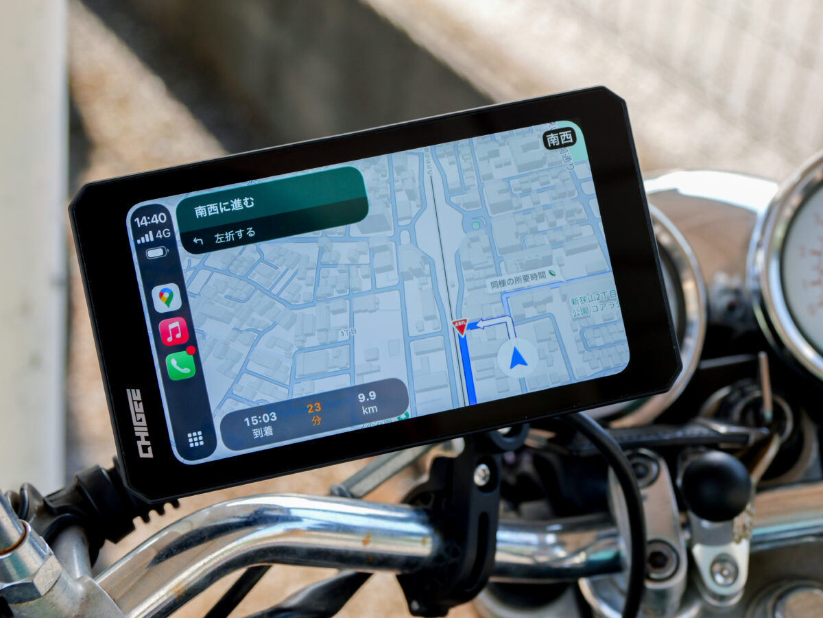 実際に走行時にナビアプリを使った操作感やGPSの感度についてもスマホとなんら変わらず、画面が大きい分iPadなどのタブレット端末でナビをしているような見やすさまである。