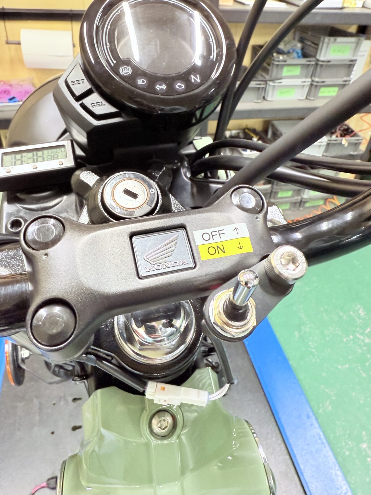 EZ+plusを装着した車両には、ハンドル部に「ON・OFF」スイッチが設けられ、手軽にEZ+plusの効果の有無が比較できるようになっている。