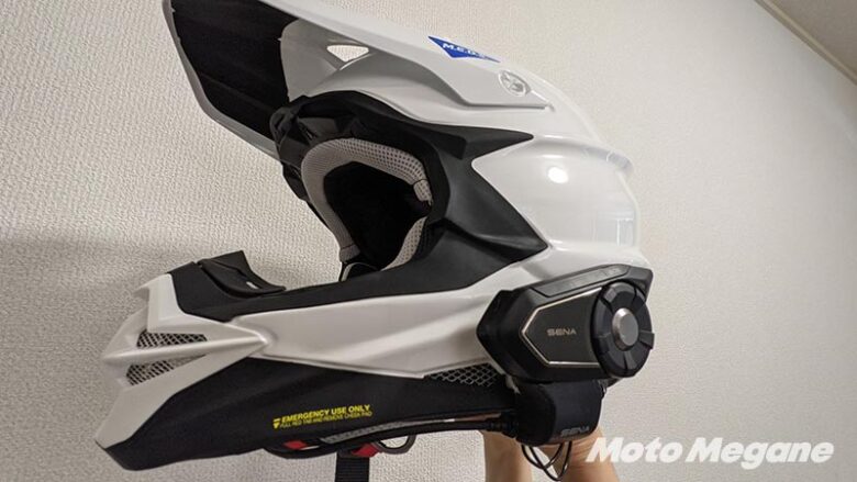 あおちゃんのヘルメット(VFX-WR)とインカム(SENA30K)はこんな感じでくっついてます!
