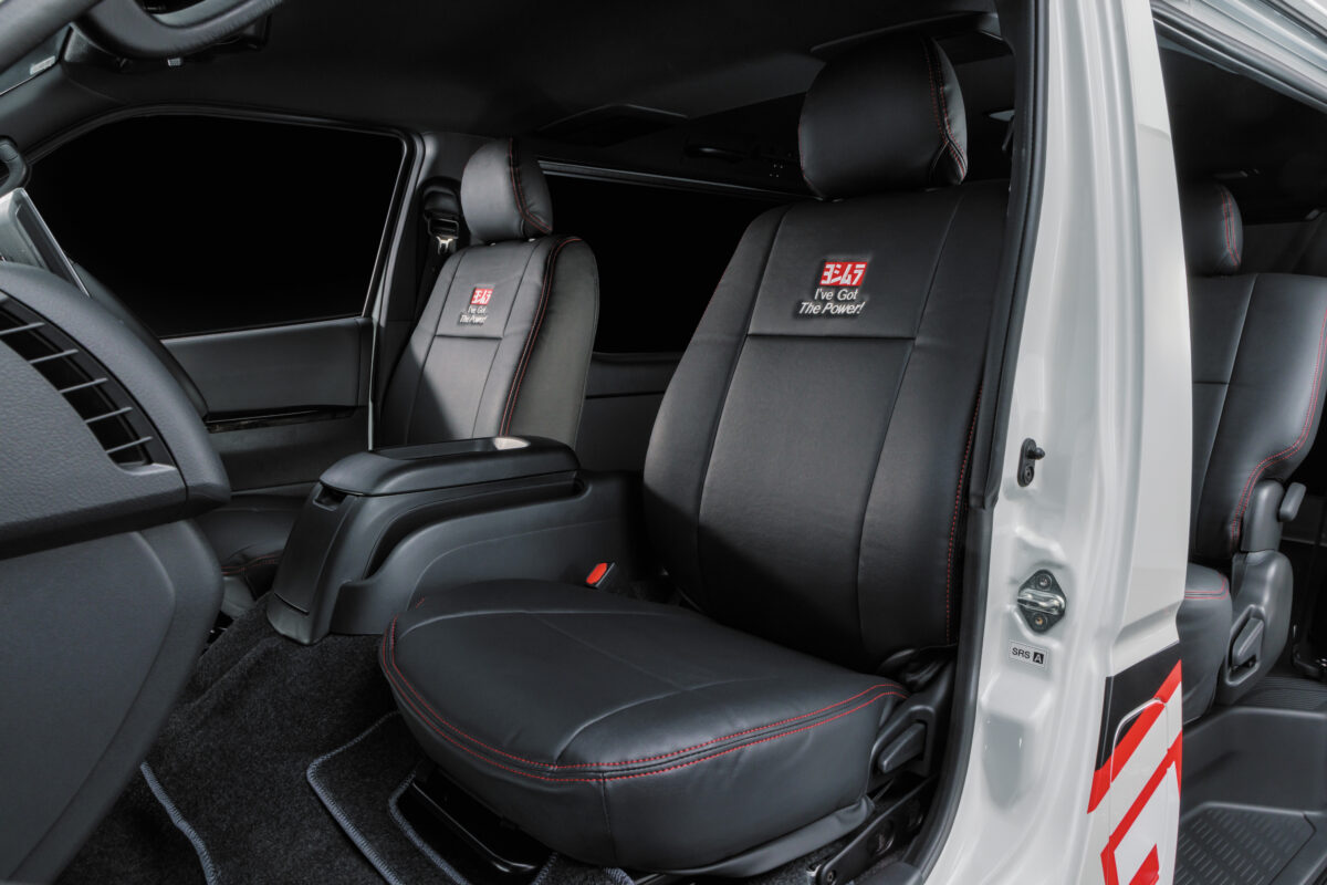 軽トラだけにとどまらず、トランポとしても人気の高いハイエース用のホイールやシートカバー(運転席・助手席/後部座席一列)も展開しているのだ。