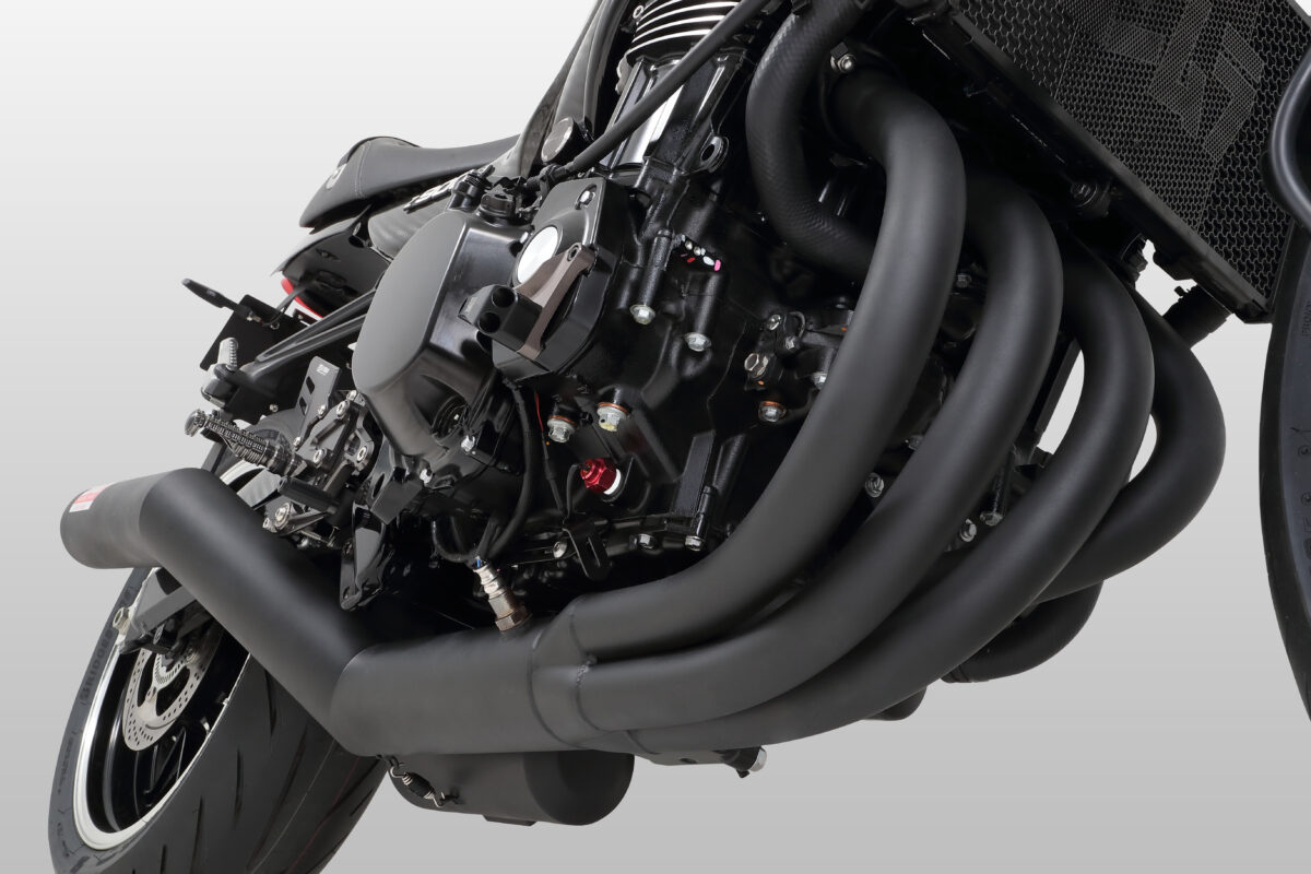 中でも注目は、「手曲ストレートサイクロン Duplex Shooter」だ。熟練職人の手作業によって仕上げられるフルエキゾーストマフラーには、鉄とステンレスを使い分けた構造を採用。伝統的な美しさと現代的な性能を両立。新設計のサブサイレンサーや4-2-1集合構造により中低速域の扱いやすさを保ちつつ、ピークパワーを向上。さらに約23%の軽量化も実現している。鉄特有の響きによる重厚なサウンドも魅力だ。