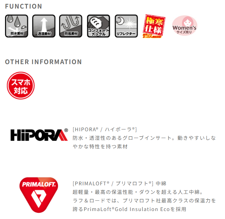 品名: プリマロフト®アドベンチャーウインターグローブ