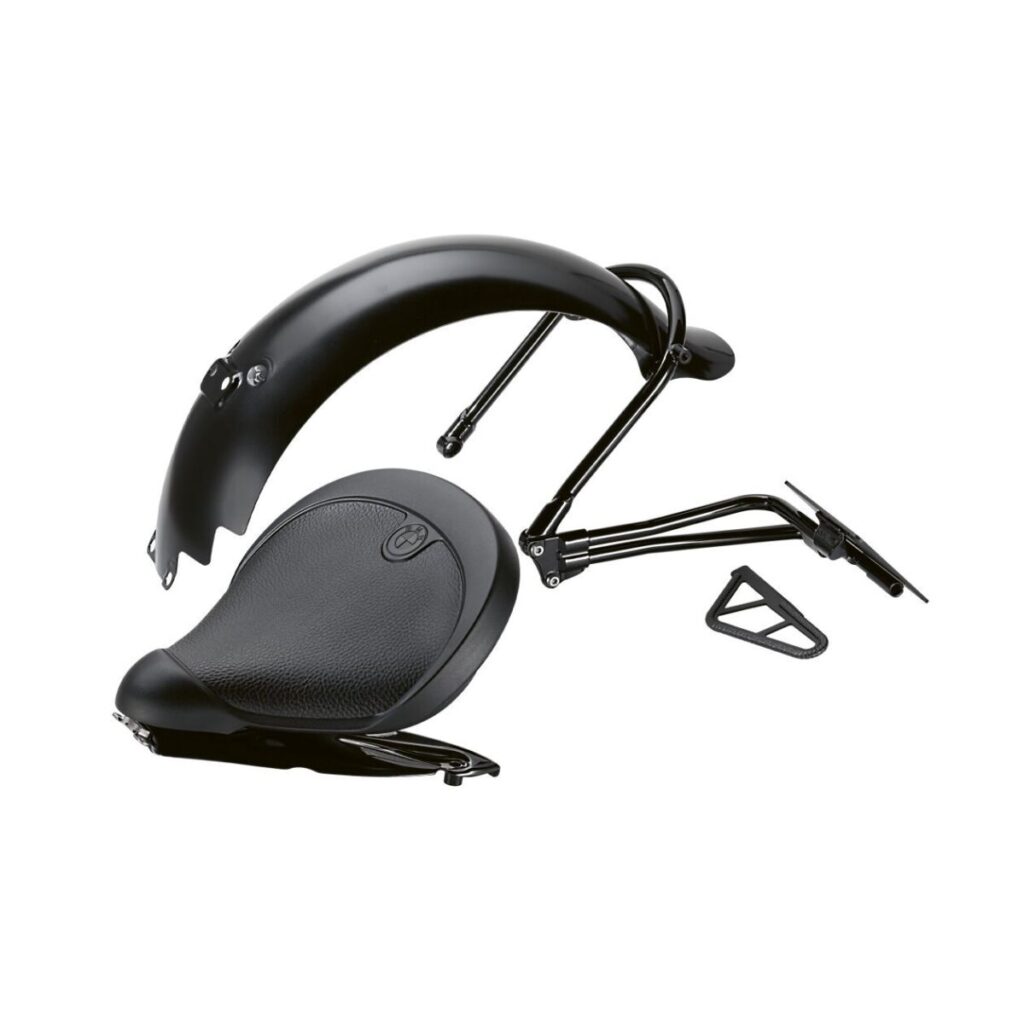 R 18 をスタイリッシュなボバースタイルに。 BMW Motorrad 純正 R 18 ボバーキットが登場しました。 サドルタイプのシングルシート、美しいラウンドのリヤフェンダー、そして個性的なサイドタイプのナンバープレートベースのトータルなキットです。 標準のシート、リヤフェンダー、ナンバープレートベースをキットパーツへとカスタムすることで、自分だけのボバースタイルに仕上げることができます。 ※車両取り付け後、構造変更が必要となります。 ※取付にはLEDコンビネーションウインカーとケーブルスプリッターが別途必要となります。 ※BMW純正オプションのVance& Hinesテーパードマフラーとの併用は不可となりますが、同じく純正オプションのAkrapovicスポーツマフラーとの併用は可能です。