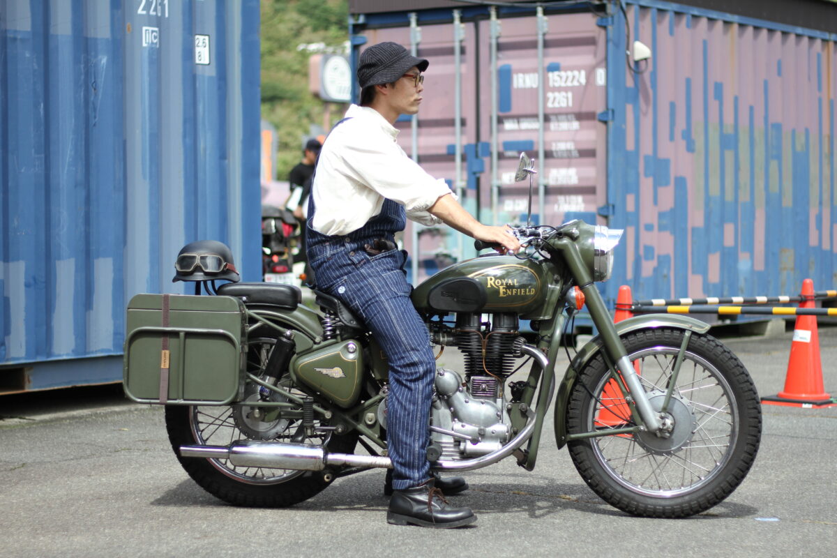 友達が「こういうバイクあるよ」と紹介してくれたんです。当時は「アーミーは興味ない」と断りましたが、実物を見ると気に入って購入を決めました。このバイクに乗るときはRoyal Enfieldとのマッチングを考えて、ファッションも意識しています。