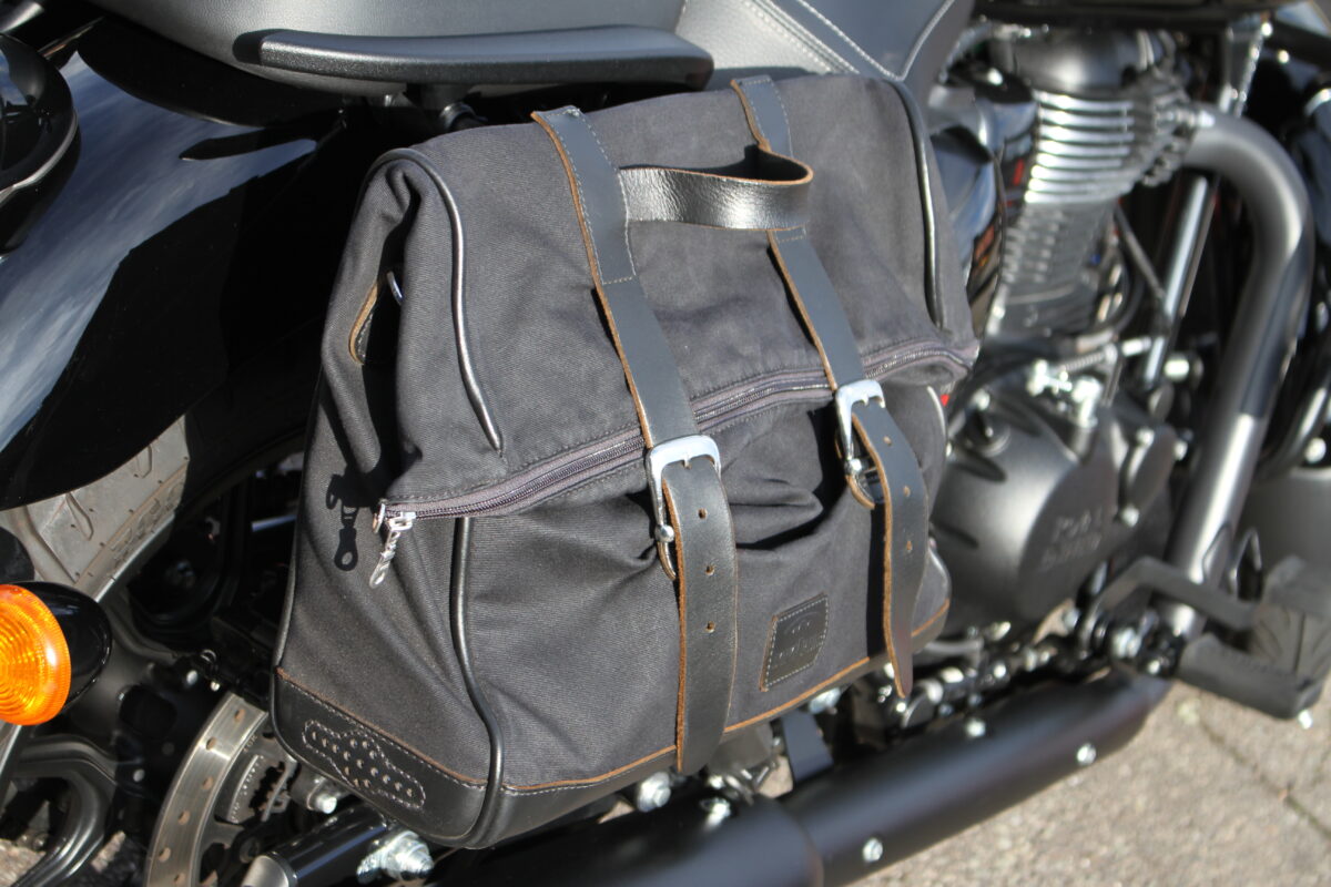 サイドバッグはディーラーでオススメされたLONG RIDE。防水ワックスでコーティングしていますので、線状降水帯の中を走っても荷物はほとんど濡れませんでした(防水インナーバッグも別売りされています)。