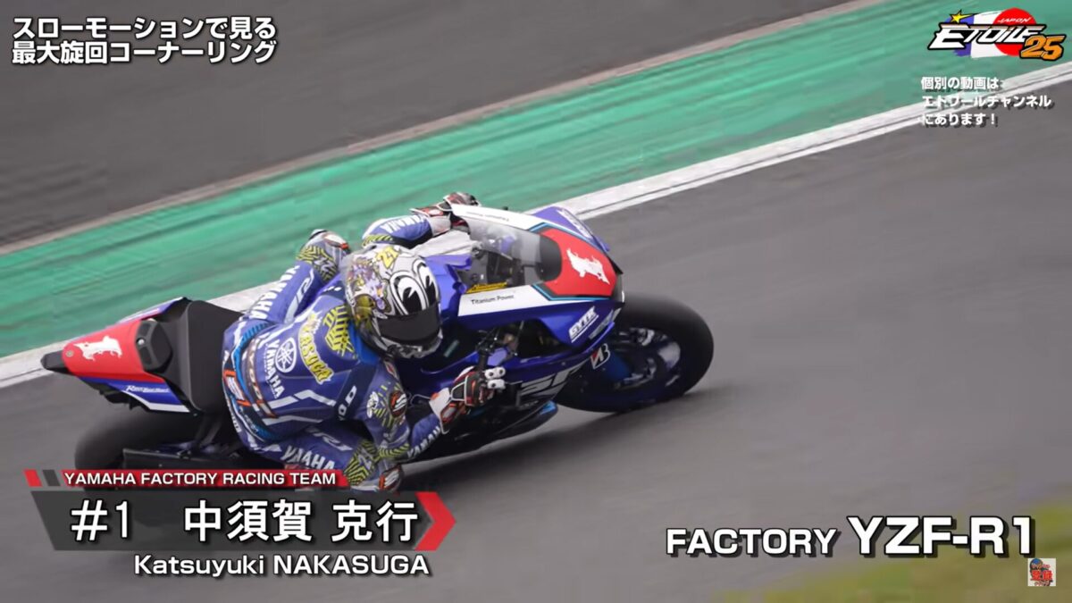 秒にわたってフルバンクの動画を配信しています。JSBクラスで「絶対王者」と呼ばれる中須賀克行選手や、ドゥカティを操る水野 涼選手、岡本裕生選手など、多数のライダーのコーナーリングを収録しています。どうぞご覧ください。