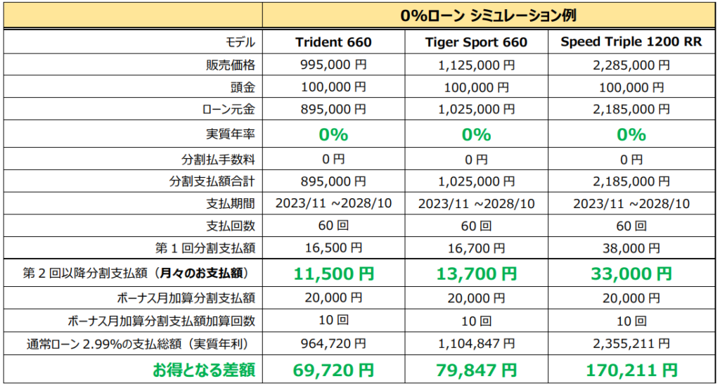 Trident 660、Tiger Sport 660、Speed Triple 1200 RS/RR に 0% の特別金利ローンが登場!
