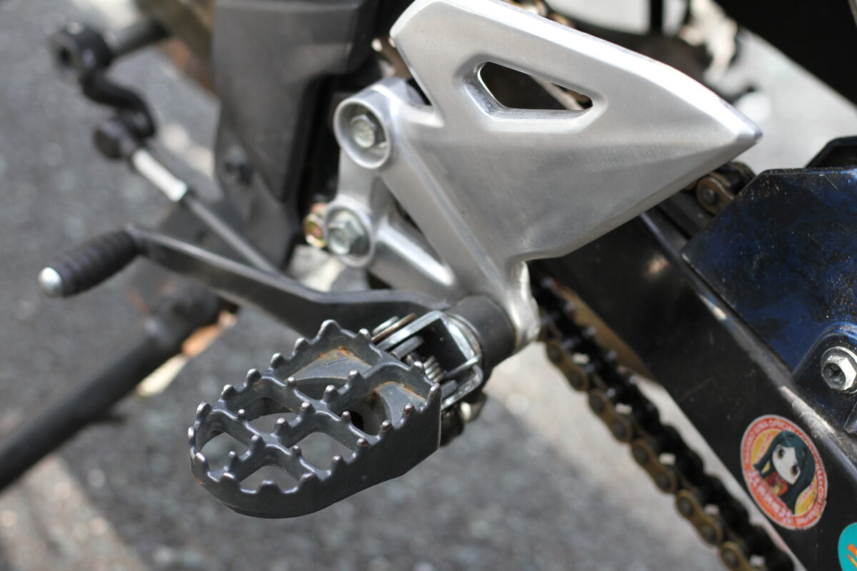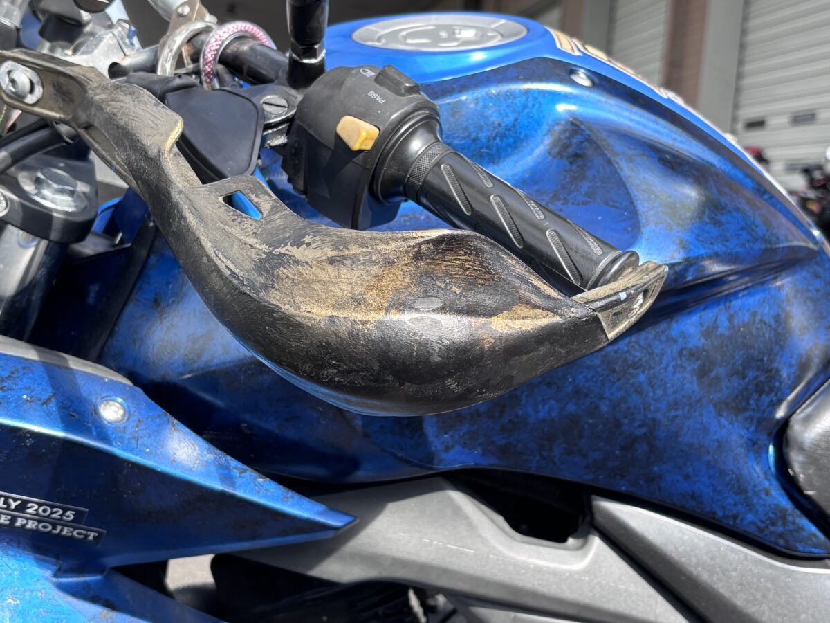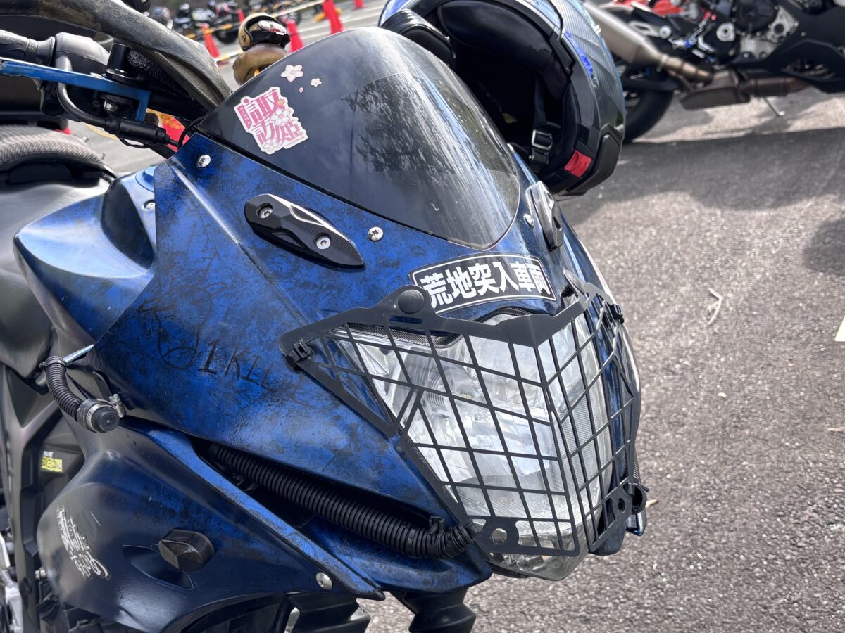 他車種の純正パーツを安く流用したり、メーカー不明の格安パーツを着けているので自慢できる物はありません笑。でも、金属芯入りのナックルガードは2ヶ月前にシカと正面衝突したときにライダーを守ってくれましたし、転倒時に車体のダメージを何度も軽減してくれたので一番のお気に入りです。