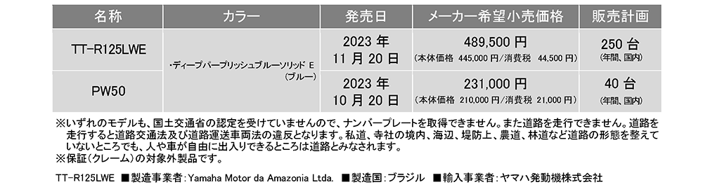 「TT-R125LWE」、「PW50」2024年モデルを発売