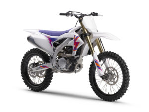 2024年モデルは、上級オフロードレーサー「YZシリーズ」とのリレーションを図り、大きめのロゴと、3種の異なるブルー系色を調和させてレーシーな雰囲気を強調したカラーリングを採用しました。