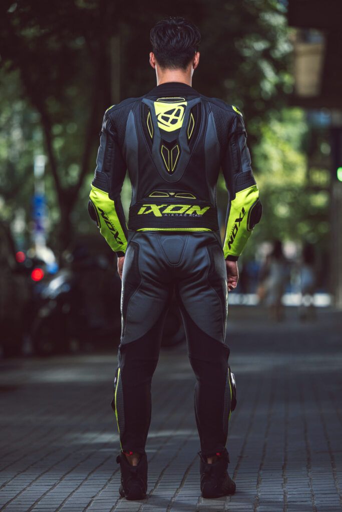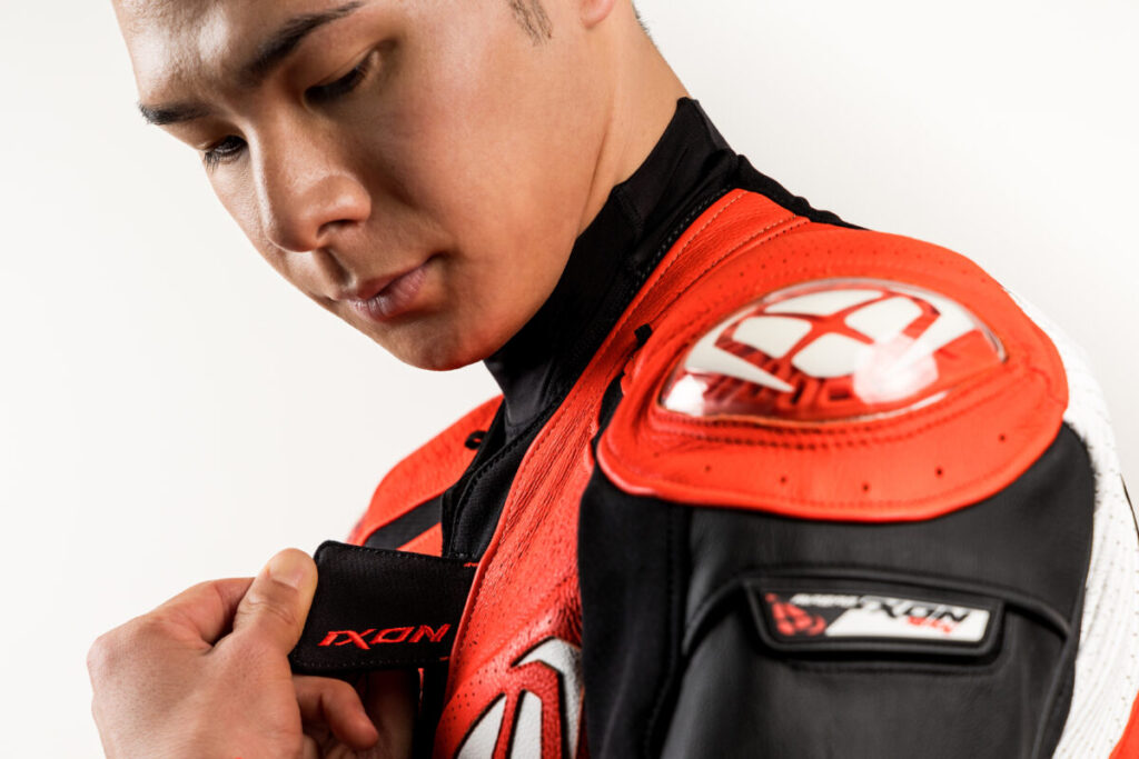 IXON として日本で初めてレーシングスーツを発売。MFJ 公認を取得し、Asia Fit(アジアフィット)を採用し、日本人の体形に合わせたプロテクションの位置やサイズに、フランスのオリジナルデザインを採用したレーシングスーツ。