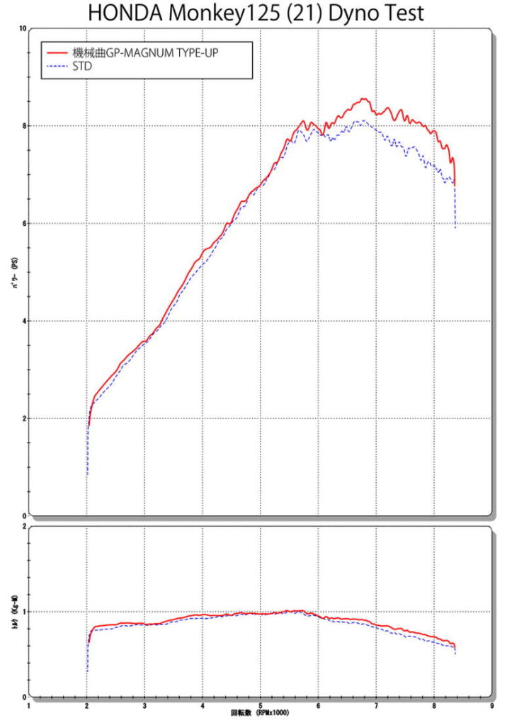 機械曲GP-MAGNUMサイクロン TYPE-UPは、Monkey125のオリジナルフォルムをそのままに、性能、サウンド、スタイルを追求して開発された。