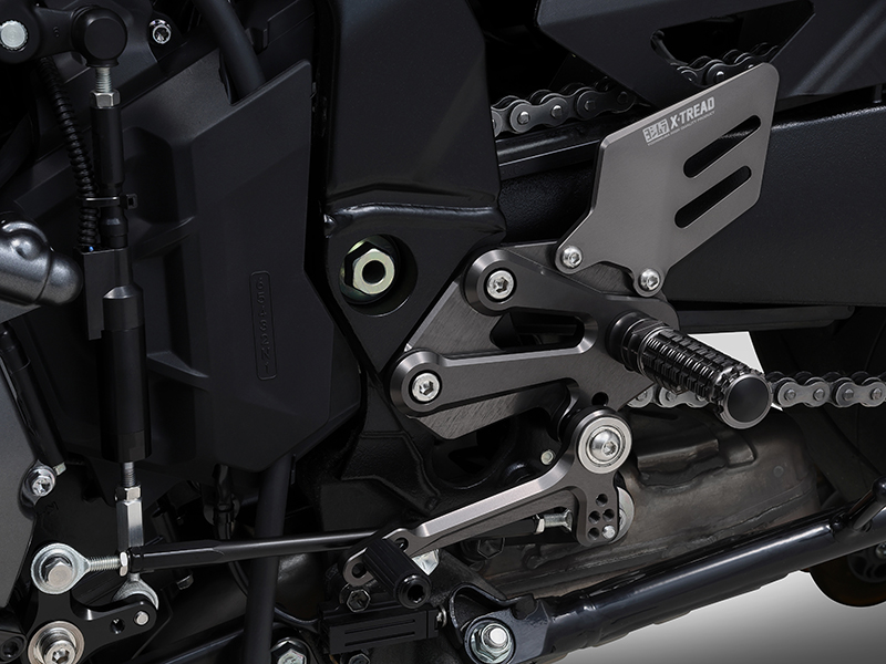 GSX-8S用に設計されたステップKIT X-TREADは、ライダーの好みに応じて4つのステップポジションから選択が可能です。ベアリングを組み込んだペダルや、特別な切削加工を施した固定式ステップバーは、ダイレクトな操作感を生み出します。