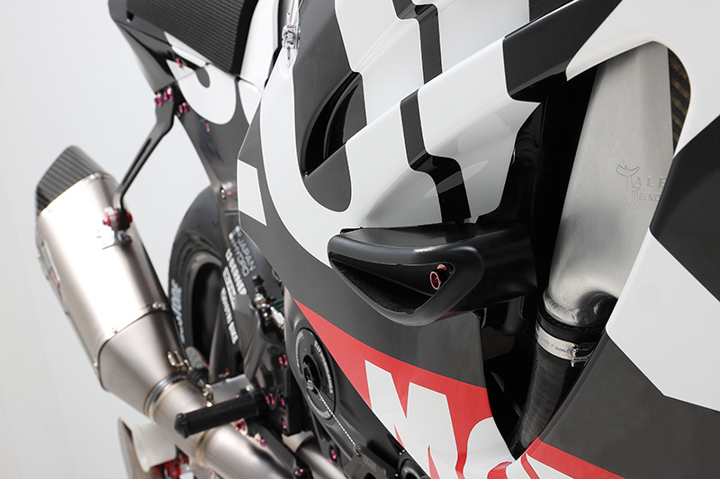 走行時における転倒時にシャーシ損傷のリスクを軽減するレーシングスライダーKIT「PRO SHIELD」は38,500円。小石などによるラジエターへのダメージを最小限に抑えるラジエターコアプロテクターは21,450円。カプラーオンタイプのLEDテールランプもセットになったスタイリッシュなフェンダーレスKITは33,000円(いずれも税込)。その他、専用のカスタムパーツが多数ラインナップしている。