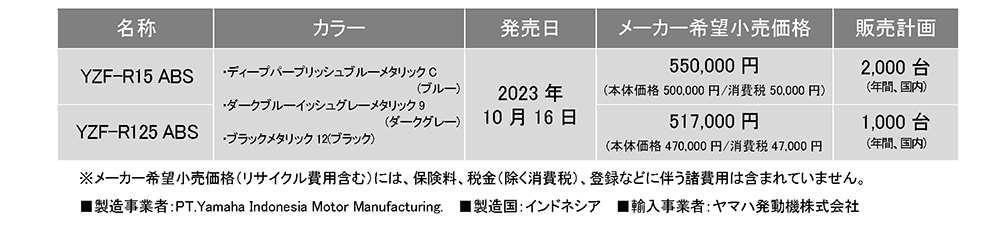 ヤマハ発動機株式会社は、軽二輪・原付二種クラスにそれぞれ、ロードスポーツモデルの新製品「YZF-R15 ABS」と「YZF-R125 ABS」を10月16日に発売します。