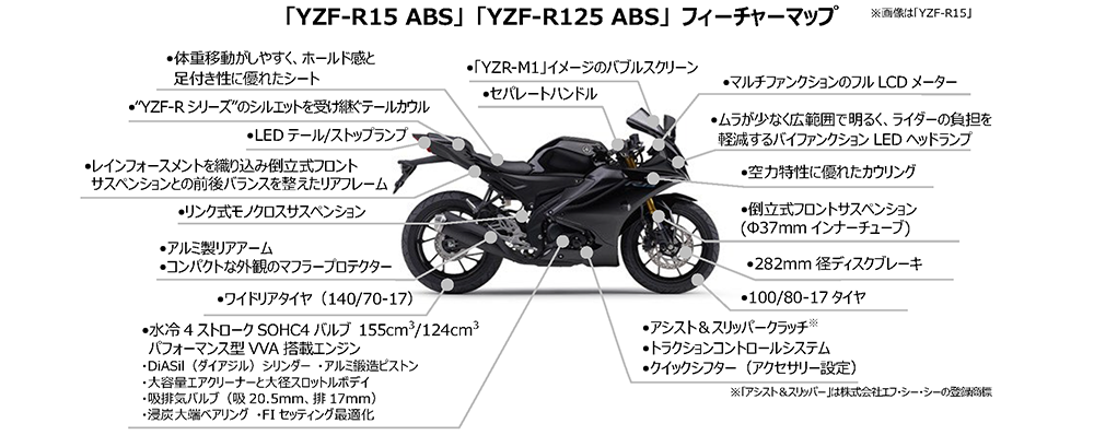 YZF-R15/YZF-R125製品サイト: https://www.yamaha-motor.co.jp/mc/lineup/yzf-r125/