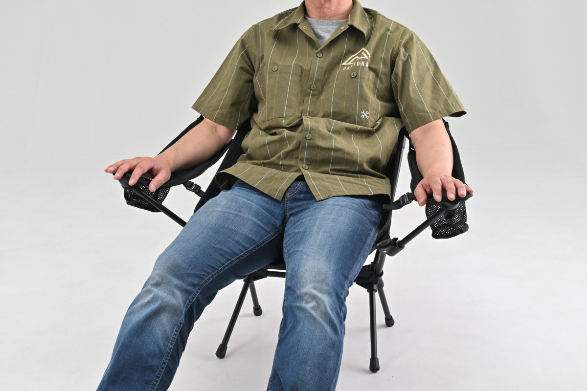 アウトドアチェアを選ぶとき、軽さを重視すると、どうしても肘掛けが無いタイプに。でも実際は、腕を置けないことで長時間座ると肩がこる、姿勢が安定しない、立ち上がりにくいなどなど….そんな不満、感じたことありませんか?