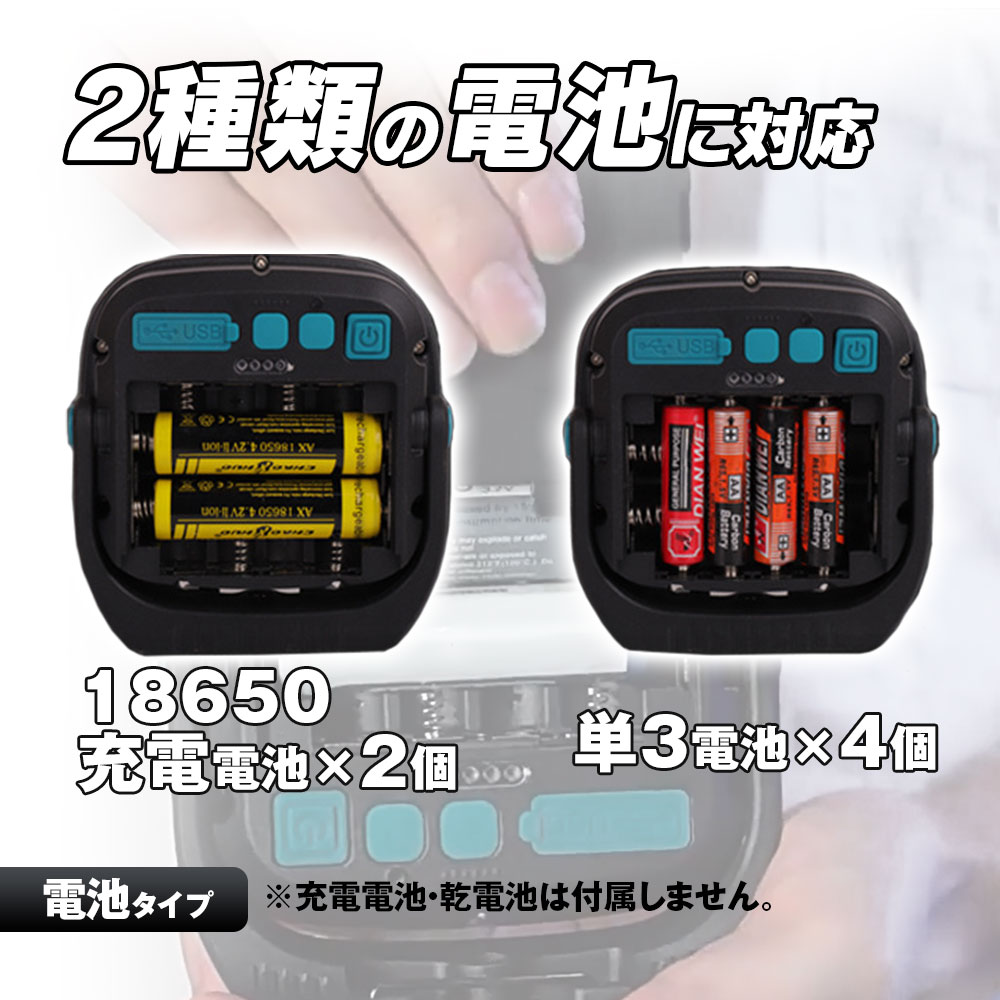 対応電池:単三電池×4、18650充電電池×2(電池タイプ)