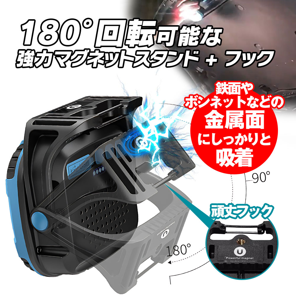 軽量コンパクトで180°回転可能な強力マグネットスタンド付き4000lm爆光LEDの作業灯